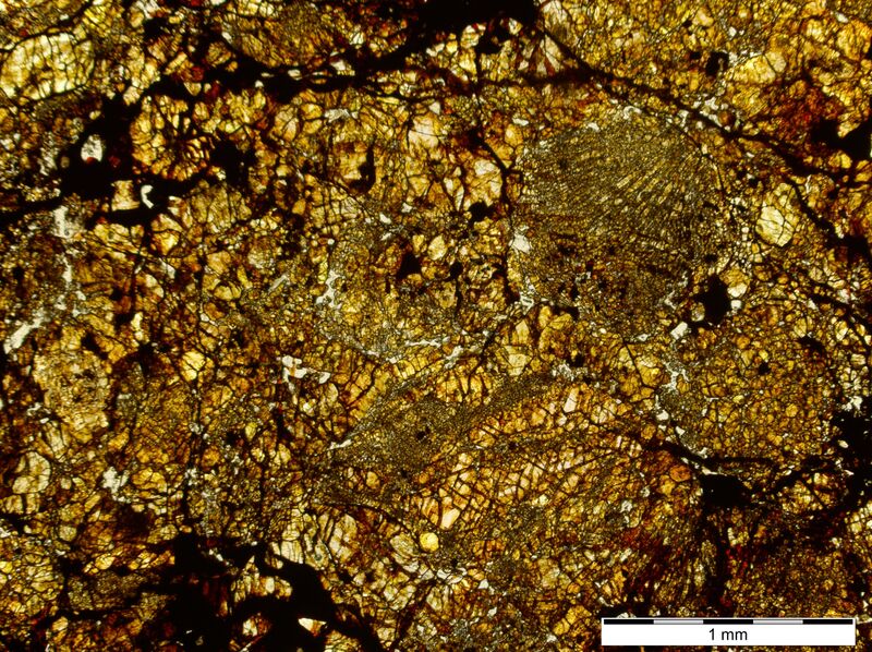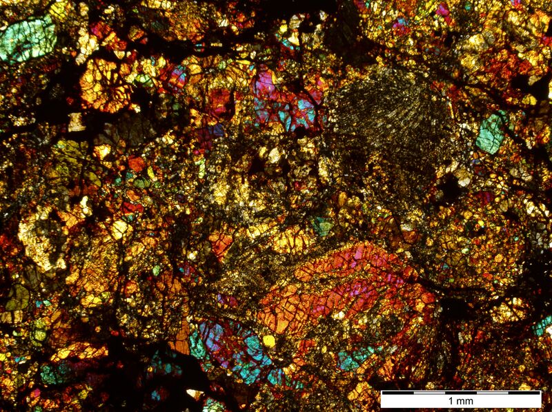 Силикатная часть состоит из оливина Fa25.11±1.46 (N=13) и низкокальциевого пироксена Fs20.1±0.6Wo1.52±0.25 (N=17).