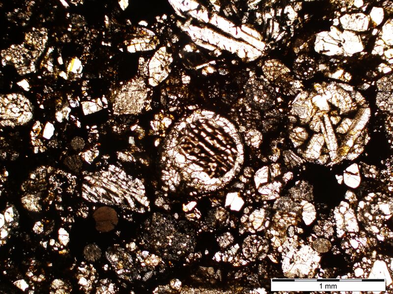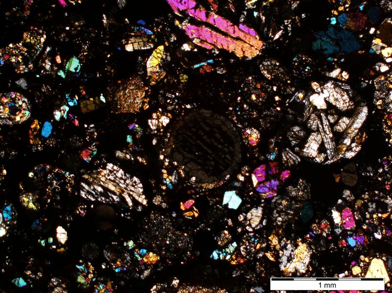 Силикатная часть состоит из оливина Fa15.8±1.2 (N=48) и низкокальциевого пироксена Fs11.2±3.1Wo0.8±0.6 (N=24), плагиоклаза Ab91.7An2.6Or5.1 (N=5), высококальциевого хромистого пироксена En49.9Fs15.4Wo34.2 (N=5), хромита Crt76.8Spl5.5 (N=6). Камасит содержит (мас. %, N=5): Fe 92.4, Ni 7.1, Co 0.56, тэнит содержит 27.1 вес.% Ni, 0.26 вес.% Co (N=3). Троилит близок к идеальной формуле FeS.