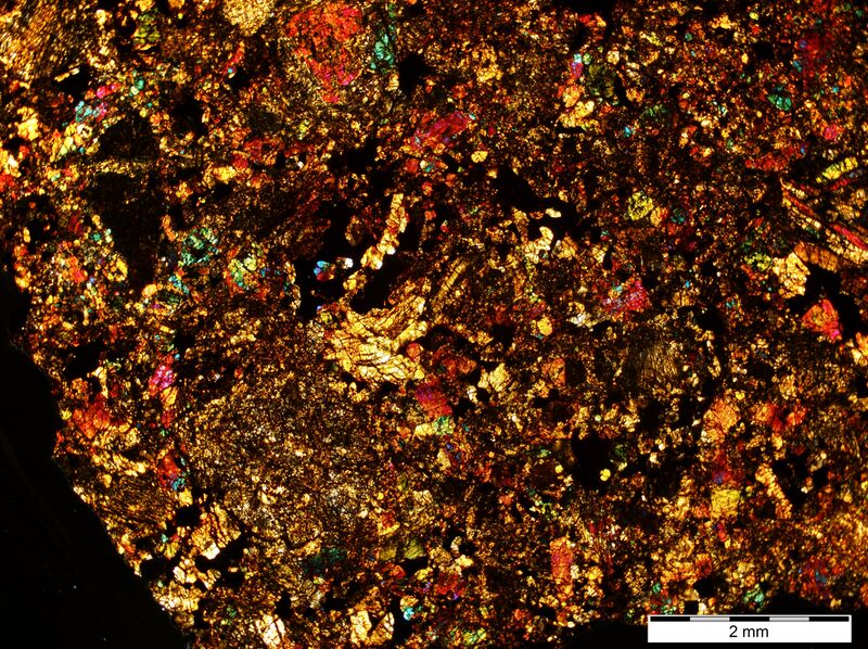 Силикатная часть состоит из оливина Fa25.35±0.56 (N=25) и низкокальциевого пироксена Fs20.7±0.7Wo1.47±0.29 (N=21), плагиоклаза Ab82.0An10.6Or6.7 (N=4), высококальциевого хромистого пироксена En46.6Fs9.1Wo44.1 (N=2), хромита Crt75.6Spl9.1 (N=2). Камасит содержит (мас. %, N=1): Fe 93.78, Ni 5.25, Co 0.75, тэнит содержит 33.85 и 0.46 вес.% of Ni and Co (N=4). Троилит близок к идеальной формуле FeS.