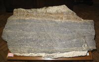Коллекция Систематическая коллекция, №44204. Сидерит с галенитом и сидеритом в доломитовой жиле. Большой штуф 90x55 см. Длина экспоната 90 см.