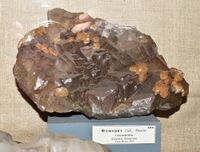 Найден: Аурахмат, 80 км к северо-востоку-востоку от Ташкента, Узбекистан.Минералы-спутники: Кальцит. Расположен на витрине exp33aКоллекция Систематическая коллекция, №55870.