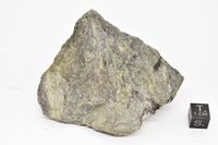 Коллекция Систематическая коллекция, №56060. Микрозернистый агрегат серы с включениями и корочкой аргентита. Из зоны "баритовой сыпучки". Размер образца 6.5 х 6 х 3.5 см. Длина экспоната 6 см.