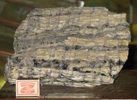 Коллекция Систематическая коллекция, №71539. Желтый шестоватый топаз (пикнит) с циннвальдитом (26х23х7 см) Длина экспоната 26.0 см.