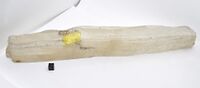 Это фрагмент крупного удлиненного кристалла гипса с включением самородной серы. Происхождение: Тетюши, Среднее Поволжье.