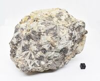 Найден: Вороньи Тундры, Кольский п-ов, Россия.Минералы-спутники: Лепидолит, Клевеландит. Расположен на витрине exp121