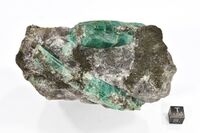 Коллекция Систематическая коллекция, №84816. 2 полупрозрачных призматических кристалла в кварце, в слюдите. 11х6.5 см.
