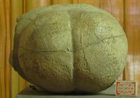 Коллекция Систематическая коллекция, №85297. Двойная "почка" - ритмично-зональная корка сферолитовых пучков. 30х24х22 см. Длина экспоната 30 см.