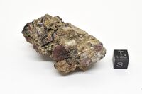 Коллекция Систематическая коллекция, №85839. Вишнево-красный 1 см кристалл на натролите с магнезиоарфведсонитом; "Zr-галлуазит", опал (пленка). 6х3.5х2.5 см.