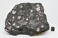 Коллекция Систематическая коллекция, №85893. Фиолетово-розовые псевдоморфозы по пластинчатому бета-ломоносовиту (с реликтами желтого бета-ломоносовита) в альбит-пироксеновом мета-ломонтите. 13х11х4 см.