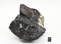 Коллекция Систематическая коллекция, №88681. 5х3 см уплощенный пинакоидально- призматический кристалл в фените, пронизанном игольчатыми кристаллами эгирина. Длина экспоната 11.0 см.