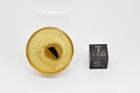 Коллекция Систематическая коллекция, №89071. Полированный препарат для микрозонда с обломком, сложенным агрегатом зерен падмаита и клаусталита. Длина экспоната 0.7 см.