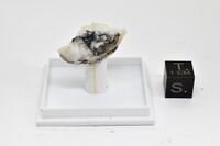 Коллекция Систематическая коллекция, №91979. Эскимоит (зерна до 0.2мм) в агрегате с другими сульфосолями серебра и висмута: викингитом, трежеритом, ширмеритом, урейитом, густавитом. В кварце Длина экспоната 2.0 см.