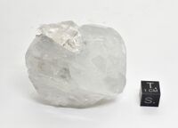 Коллекция Систематическая коллекция, №93216. Бесцветный прозрачный кристалл данбурита размером около 2,5см с поверхностями растворения. Врастает в кристалл бледно-зеленого датолита размером 6см. На датолит нарастают кристаллы кварца. Длина экспоната 6.0 см.Размер минерала 25.00 см.