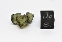 Коллекция Систематическая коллекция, №93233. Сросток трех кристаллов зеленого прозрачного фторапатита с включениями черных игл эгирина. Длина экспоната 2.0 см.Размер минерала 1.00 см.