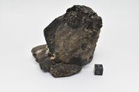 Коллекция Систематическая коллекция, №93818. Частично замещенный флогопитом кристалл паргасита. Длина экспоната 11.0 см.Размер минерала 7.00 см.