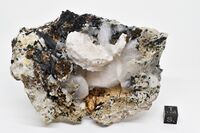 Коллекция Систематическая коллекция, №94187. Два белых стройникованных кристалла эпидидимита размером 3,5х1 и 1х0,3 см в полости в щелочном пегматите. Длина экспоната 12.0 см.Размер минерала 3.50 см.