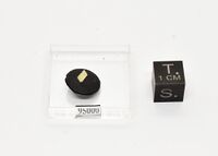 Коллекция Систематическая коллекция, №95000. Прозрачное бледно-желтое зерно арсеновагнерита. Фрагмент голотипа нового минерала Mg2(AsO4)F моноклинной сингонии. Длина экспоната 0.1 см.Размер минерала 0.10 см.