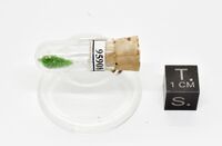 Коллекция Систематическая коллекция, №95908. Зеленые кристаллики ванадиопаргасита размером до 1,5 мм с включениями и сростками со шпинелью и лейкократовыми минералами в пробирке. Котип.
