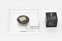 Коллекция Систематическая коллекция, №95911. Зеленоватое зерно панснерита размером около 0,2 мм в срастании с афтиталитом на клейкой ленте. Фрагмент голотипа.