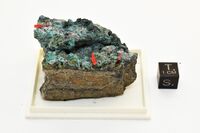 Коллекция Систематическая коллекция, №96158. Розовые сферолиты бабанекита размером до 2 мм и сферолитовые корки в полостях в кварце с мышьяком, сульфидами и вторичными минералами - лавендуланом, аннабергитом и другими. 5 х 3 х 3 см. Длина экспоната 5.0 см.