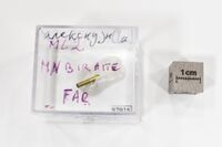 Коллекция Систематическая коллекция, №97025. Зерно алекскузнецовита-(La) размером около 100 микрон на капиллярной нити в циллиндрическом металлическом держателе. Фрагмент голотипа.