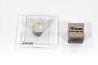 Найден: м-ние Аляскитовое, ручей Арангас, лев. приток реки Елга, басс. реки Индигирка, Вост. Якутия, Россия.Минералы-спутники: Скородит.