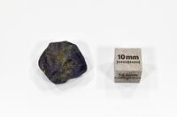 Коллекция Систематическая коллекция, №97042. Окатанный фрагмент кристалла тёмного серовато-синего корунда размером ~ 2.5 х 2 х 1 см и весом около 12 граммов. Длина экспоната 2.5 см.Размер минерала 2.5 см.