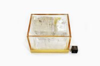 Коллекция Систематическая коллекция, №97318. Три бесцветных прозрачных спайных выколка кернита с белыми порошковатыми примазками продуктов его дегидратации и горизонтально ориентированными коричневыми включениями. Образец в заклееной пластиковой коробке размером 7 х 5.5 х 5 см. Размеры фрагментов 5.5 х 4 х 1.5, 4 х 3.5 х 1.5 и 3.5 х 3 х 2 см. Длина экспоната 6 см.Размер минерала 4 см.