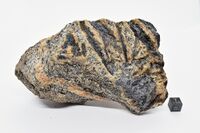 Коллекция Систематическая коллекция, №98883. Лейсты коричневато-серого призматина длиной до 5 см с голубовато-серым кордиеритом и черным турмалином в биотит-полевошпатовом гнейсе. Длина экспоната 15 см.