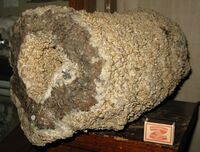 Коллекция Месторождения, №26744. Трубообразный агрегат кристаллов геденбергита, поросший снаружи и изнутри щетками кристаллов кварца. Штуф 55х24 см. Длина экспоната 55 см.