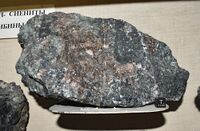 Найден: гора Расвумчорр, Хибины, Кольский п-ов, Россия.Минералы-спутники: Нефелин, Эгирин, Микроклин. Расположен на витрине exp56