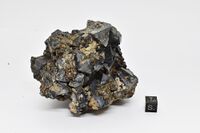 Коллекция Месторождения, №32533. Сросток октаэдрических кристаллов магнетита размером 0,3-1,5 см Длина экспоната 8 см.
