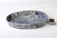 Коллекция Поделочные и драгоценные камни, №1060. Овальная полированная крышечка. 9.5x5 Длина экспоната 9.5 см.