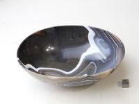 Коллекция Поделочные и драгоценные камни, №1552. Чаша овальная. h=6 d=16.8x12.8 Длина экспоната 16.8 см.