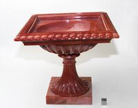 Коллекция Поделочные и драгоценные камни, №1590. Вазочка на ножке. на цоколе вазочки надпись,"Петергоф: Гран: Фабр: 1850 г" h=15 17x17 Длина экспоната 17 см.