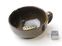 Коллекция Поделочные и драгоценные камни, №1646. Чашечка овальная с ручкой. h=3 d=5x6 Длина экспоната 6 см.