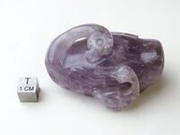 Коллекция Поделочные и драгоценные камни, №1654. Фигурка лебедя с маленьким лебедем китайской работы нового времени. l=6.5 Водоплавающая птица с птенцом. Аметист. 3.65х6.4х4.2 см. XIX - начало XX века. Разделка выполнена резьбой и лишина декоративной эффектности. Врезные прямые линии и параллельные мелкие нарезки лишь схематично передают оперение или расцветку обоих пернатых. Длина экспоната 6.5 см.