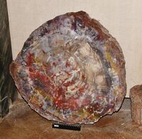 Коллекция Поделочные и драгоценные камни, №2804. Окаменелое дерево. Полированный срез ствола Длина экспоната 58 см.
