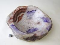 Коллекция Поделочные и драгоценные камни, №6310. Агат с кварцем и аметистом. Пепельница. Длина экспоната 20 см.