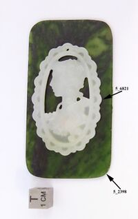Коллекция Поделочные и драгоценные камни, №6821. Кулон (дева) из белого нефрита Длина экспоната 6 см.