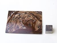 Коллекция Поделочные и драгоценные камни, №697. Яшма коричневая дендритовая. Четырехугольная полированная пластинка. 5.7x4 Длина экспоната 5.7 см.