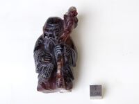 Коллекция Поделочные и драгоценные камни, №7292. Старик-мудрец. Работа Тувинской камнерезной мастерской. Куплено за 62 руб. 61 коп. Белый старец. Сердолик. 7.5х3.9х2.95 см. Белый старец - один из песонажей буддийского пантеона - божество покровитель природы и мудрости, о чем говорит "монголо-тувинская", одежда, и увесистый волшебный жезл в левой руке. Длина экспоната 7.5 см.
