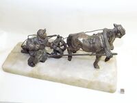 Коллекция Поделочные и драгоценные камни, №7782. Кварц, серебро. Возница, везущий лед на лошади, запряженной в сани. Мастер Я. Армфельд, по рис. Г.К.Савицкого 1908-1917 г.г. 35x17x14 см. Общий вес 6606 гр., серебро 88 весом - 1900 гр. Длина экспоната 35 см.