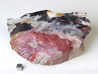 Коллекция Поделочные и драгоценные камни, №7797. Полирован. образец неправильной формы (2 полирован. под углом плоскости) Длина экспоната 17 см.