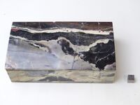 Коллекция Поделочные и драгоценные камни, №7826. Шкатулка прямоугольной формы со слегка выпуклой крышкой. Длина экспоната 16.5 см.