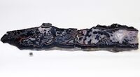 Коллекция Поделочные и драгоценные камни, №961. Агат фортификационный. 2 части одного куска с отполированной поверхностью. 49x9 Длина экспоната 49 см.