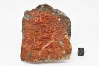 Коллекция Коллекция В.И.Степанова, №2554. Расщепляющиеся дендритные кристаллы крокоита на березите. Длина экспоната 10 см.