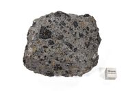 Коллекция Коллекция В.И.Степанова, №4673. Черные изометричные сколы 3-15мм кристаллов авгита, порфировидные выделения с мелкими зернами буровато-желтого оливина в базальте. Длина экспоната 9 см.