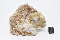 Коллекция Коллекция В.И.Степанова, №7030. Сферолитовая корка колеманита с гидроборацитом. Образец сильно люминесцирует. Длина экспоната 7 см.