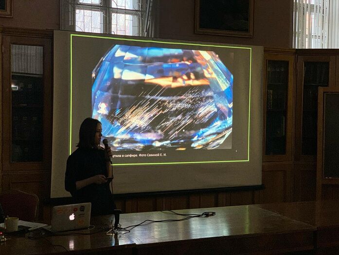 Доклады также сделали Мария Дмитриевна Щеклеина (магистрант МГУ) — «Морфология расплавных включений в кварце по результатам изучения Эльбруса, Паужетской кальдеры, кальдеры Лонг Валлей и других» и Елизавета Ивановна Савина (хранитель Музея) — «О включениях в сапфирах и рубинах».